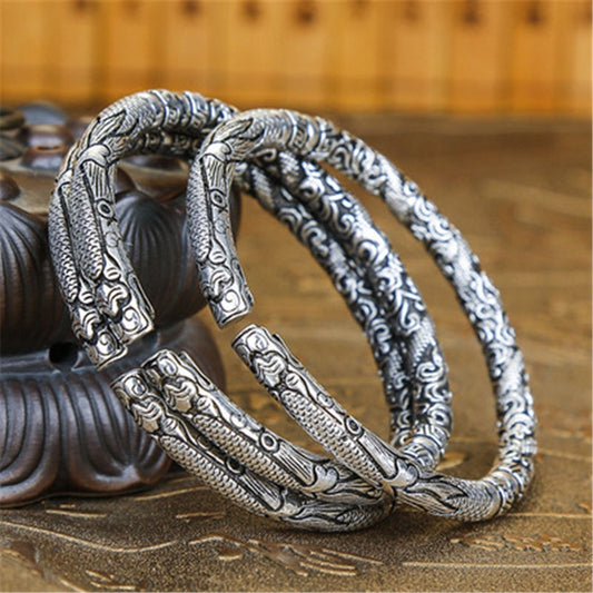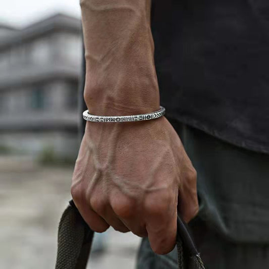 Retro Tibetan Six-Character Mantra Opening Silver Bracelet