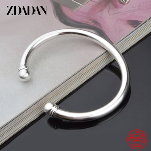 Sterling Silver Simple Double Beads Open Cuff Bracelet