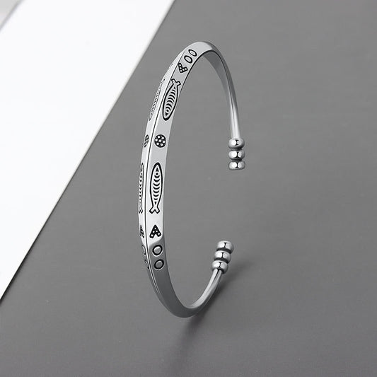 Vintage Totem Rune Carving Fish Silver Bracelet