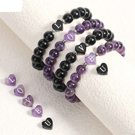 A-Z Initial Heart Shape Natural Stone Beads Bracelet