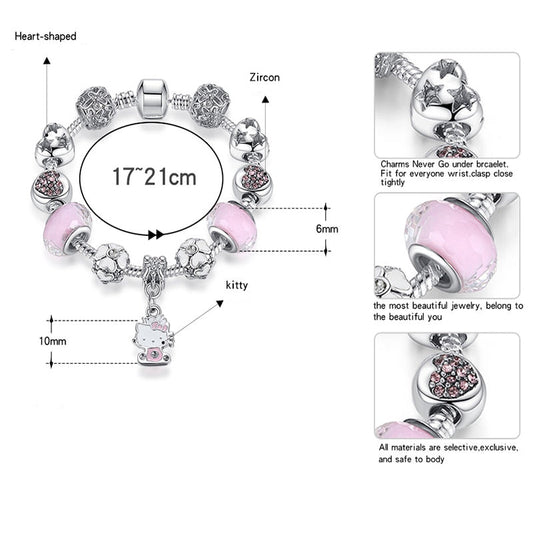 925 Sterling Silver Kitty Cat Charm Bracelet