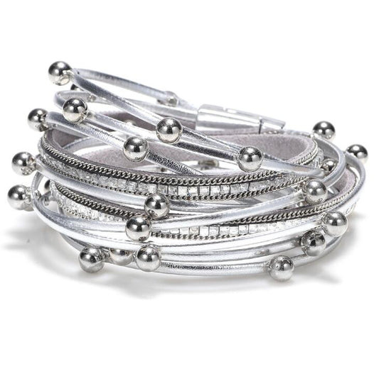 Hand Woven Women's Fashion Zinc Alloy Multi Layer Magnetic Leather Bracelet