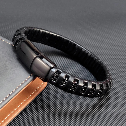 Black Braid Woven Leather Bracelet