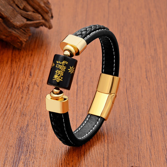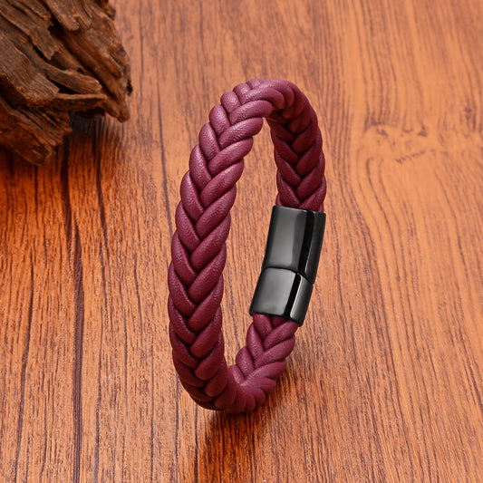 Braided Leather Bracelet with Stainless Steel Magnetic Clasp