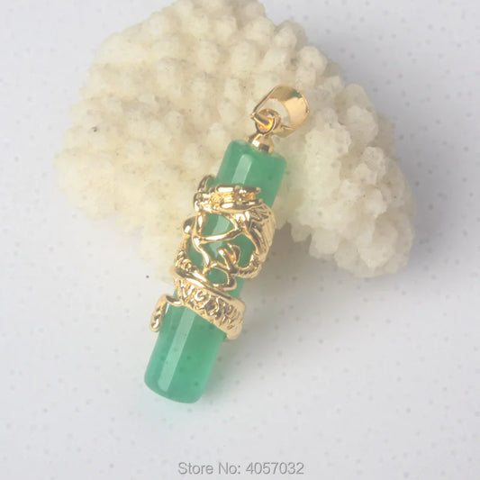 Exotic Cylinder Column Green Jade Inlaid Dragon Pendant