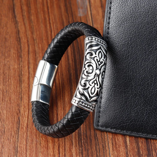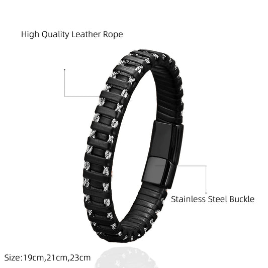 Punk Biker Chain Braided Genuine Leather Bracelet