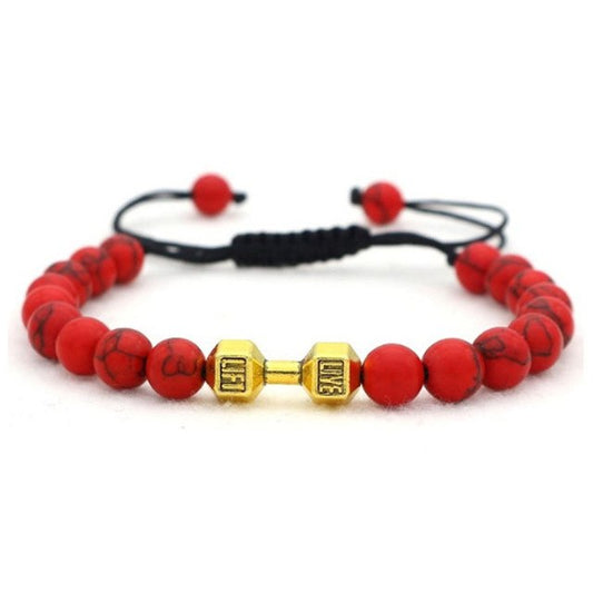 Scrub Volcanic Rock Tiger Eye Metal Dumbbell Handmade Rope Beaded Bracelet