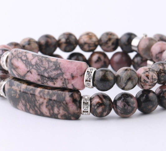 Natural Gem Stone Line Rhodonite Love Heart Bracelet
